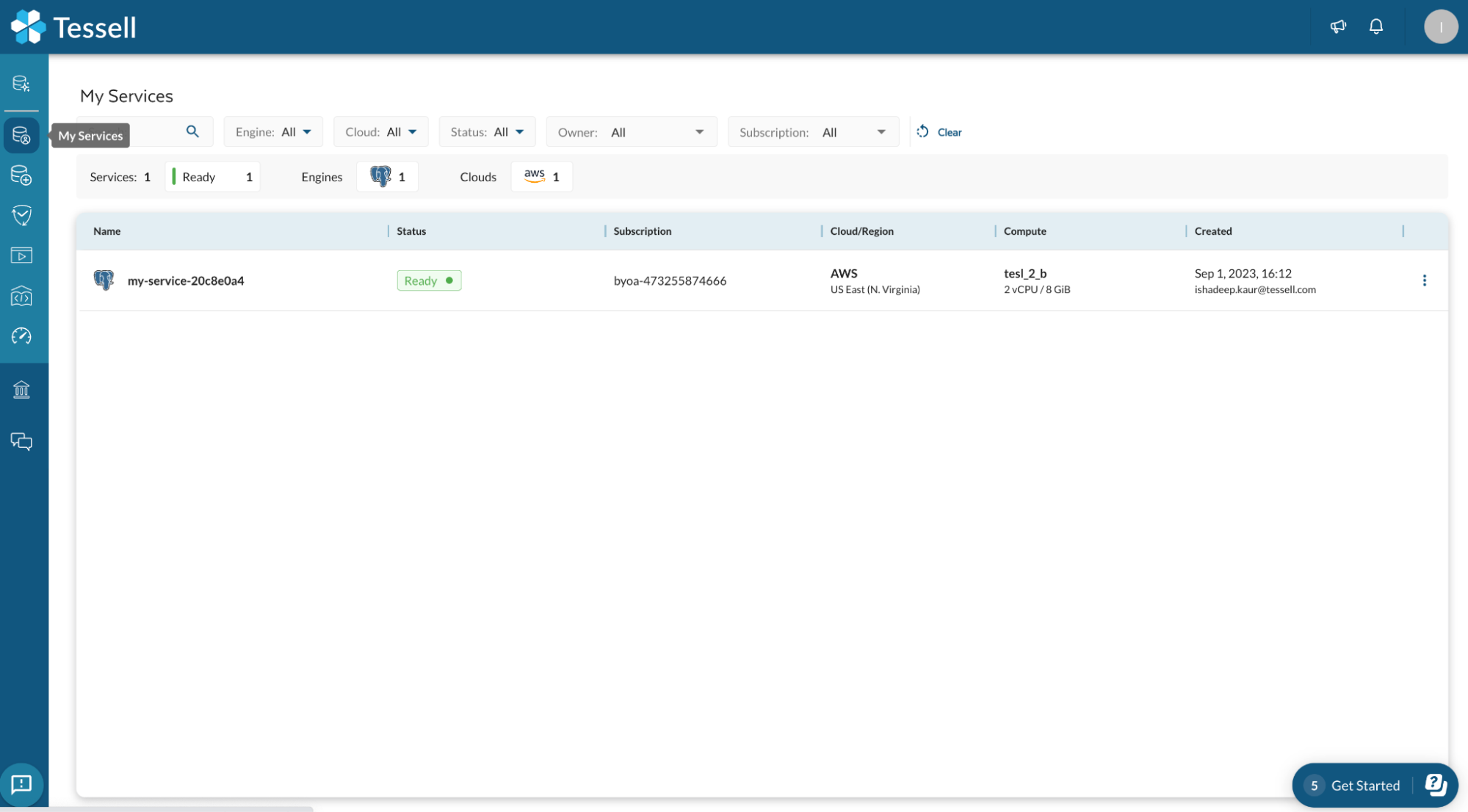 From the Tessell dashboard, click on the Provisioning option displayed on the left pane.